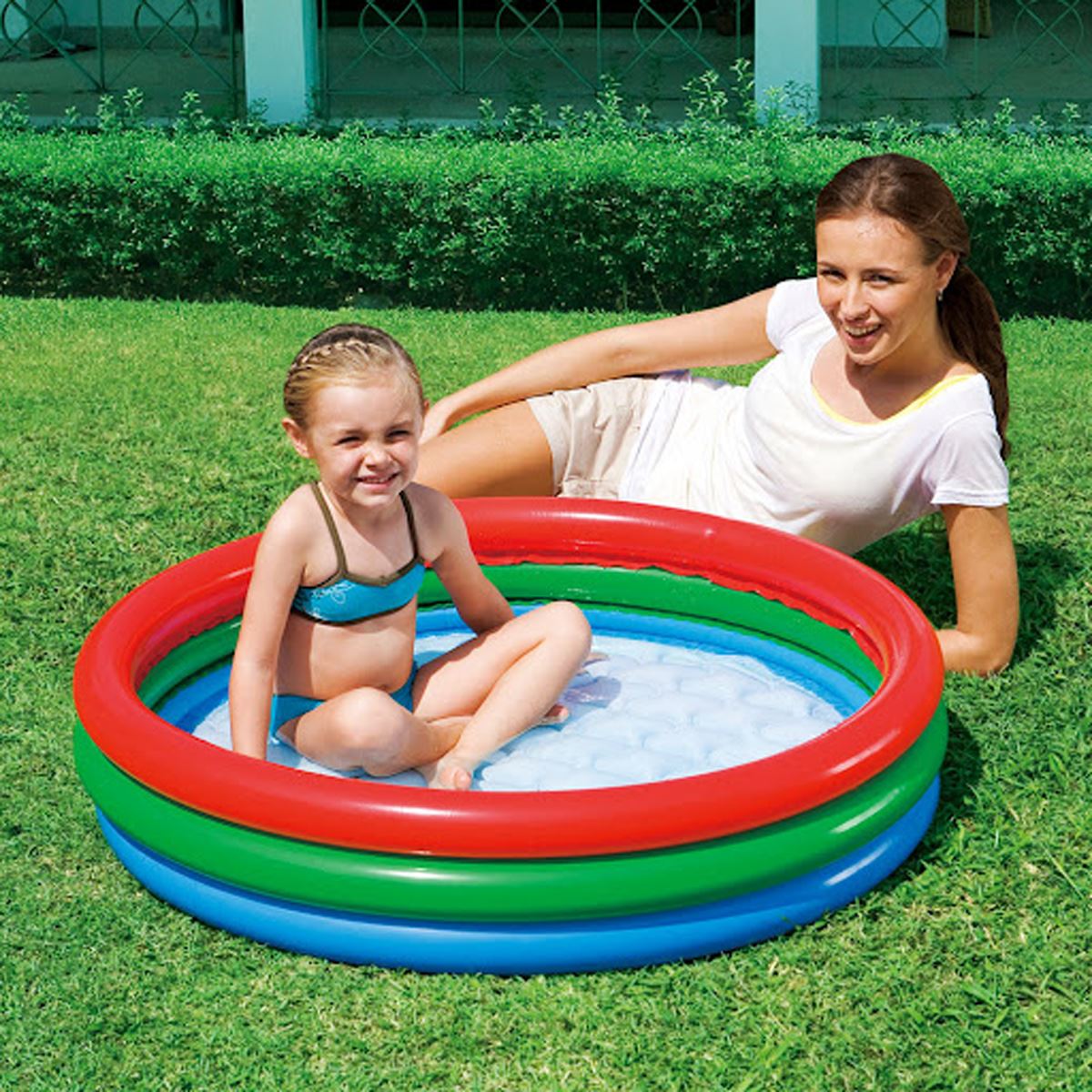 Made from sturdy pre-tested vinyl with 3 equal ring contruction and safety valves Holds upto 29 gallons (110L) Repair patch included Dimensions: 40 x 10″ (102 x 25cm) For ages 3 + years