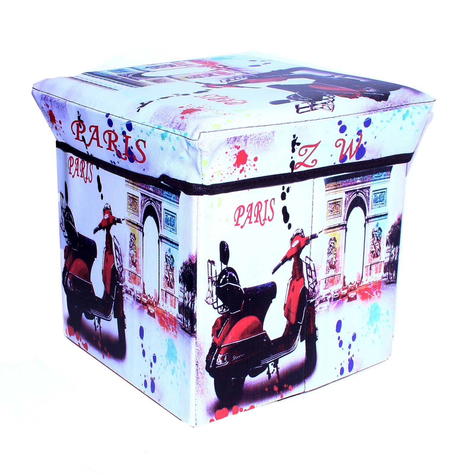 Storage Box Padded Bench Seat Paris Design Chest 30cm x 30cm x 30cm